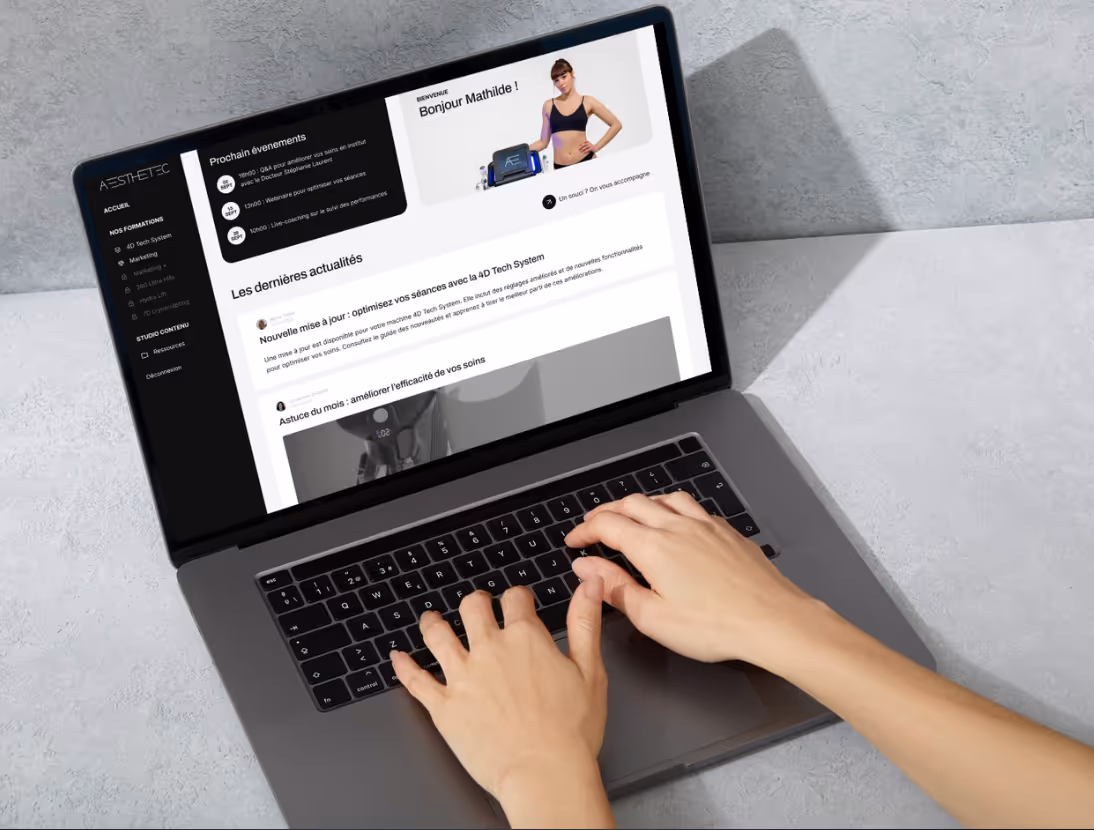 Chez Aesthetec, nous ne nous contentons pas de fournir des technologies innovantes. Nous offrons un véritable accompagnement humain et des formations continues pour assurer le succès et l’évolution de votre pratique à long terme.